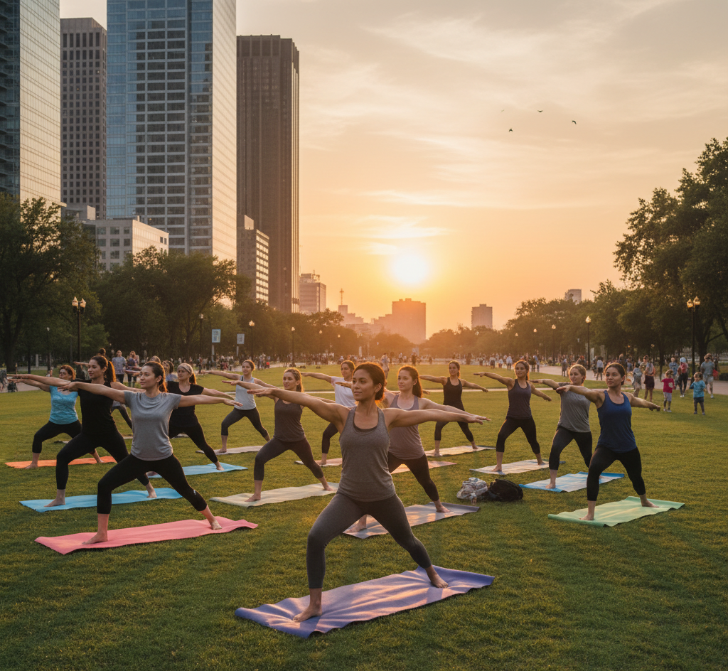 Clases de yoga en plazas o parques.